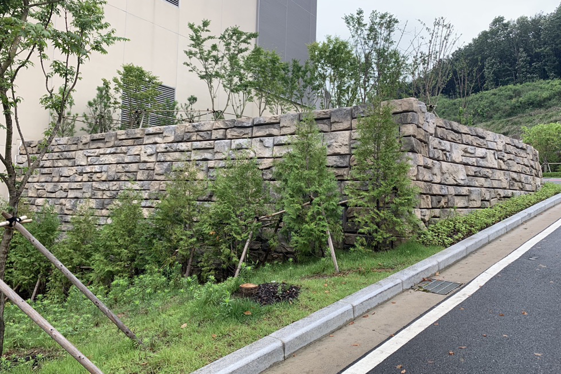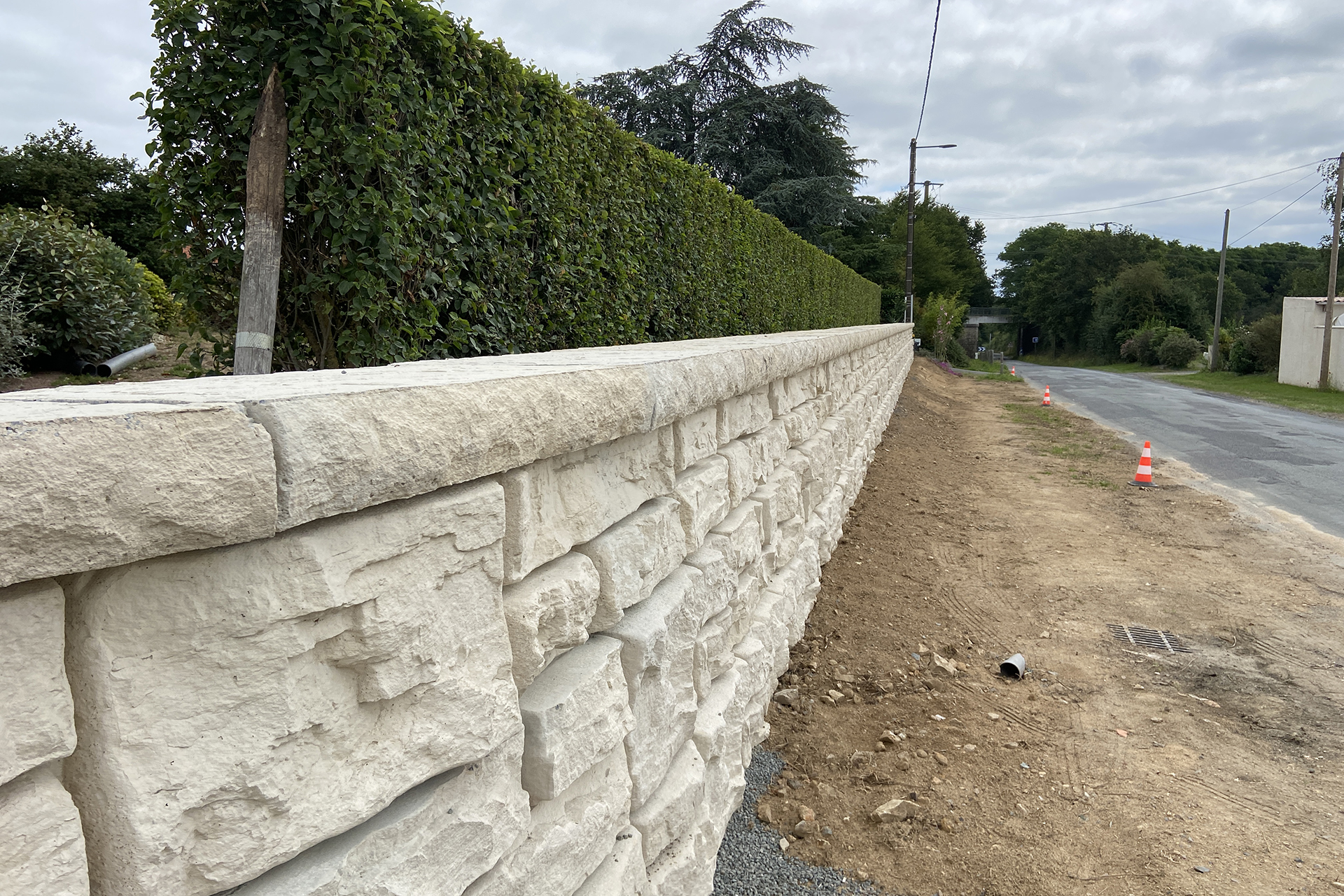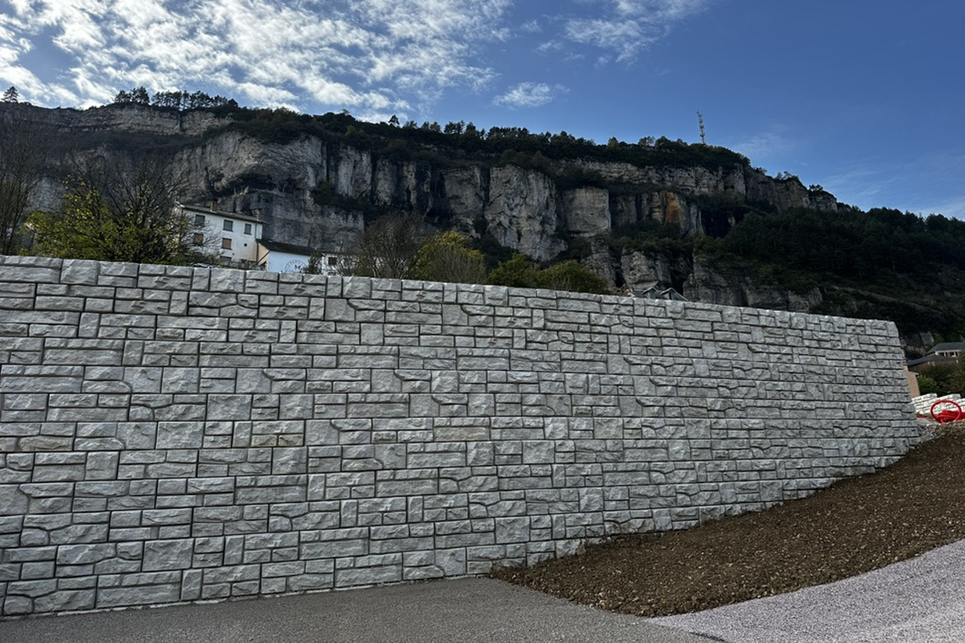 Solução funcional em blocos de betão lisos, pensada para contenção e aplicações técnicas.